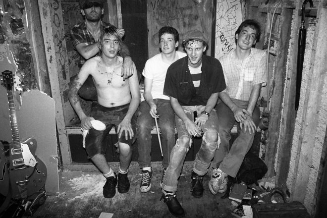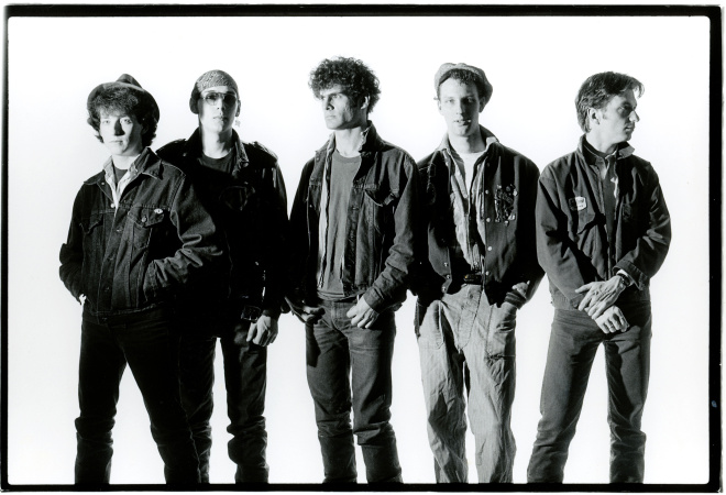 Studio portrait of Boston roots-rock band Scruffy The Cat. L to R: Mac Paul Stanfield (bass), Randall Lee Gibson (drums), Stephen Fredette (guitar), Charlie Chesterman (guitar/vocals), Stona Fitch (banjo, organ, accordion) Studio portrait of Boston roots-rock band Scruffy The Cat. L to R: Mac Paul Stanfield (bass), Randall Lee Gibson (drums), Stephen Fredette (guitar), Charlie Chesterman (guitar/vocals), Stona Fitch (banjo, organ, accordion)