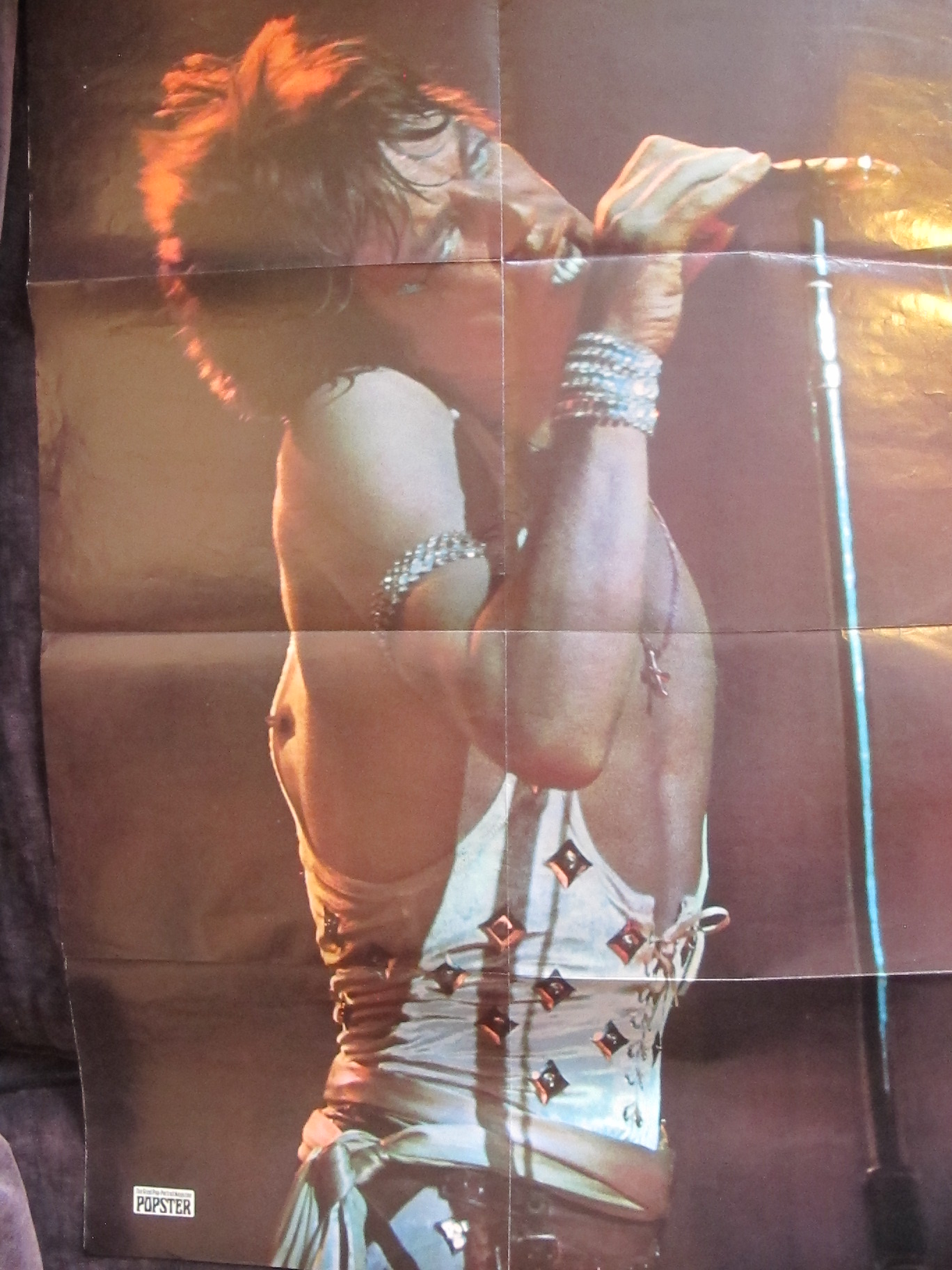 - JAGGER GYMNASTICS: Utilizing the skills he learned as a boy guesting/helping on his dad’s physical fitness program in the ’50s — yes, true! — Mick does some acrobatic moves of his own on the ’72 tour. Original wire press photo from the “RPM” archives.